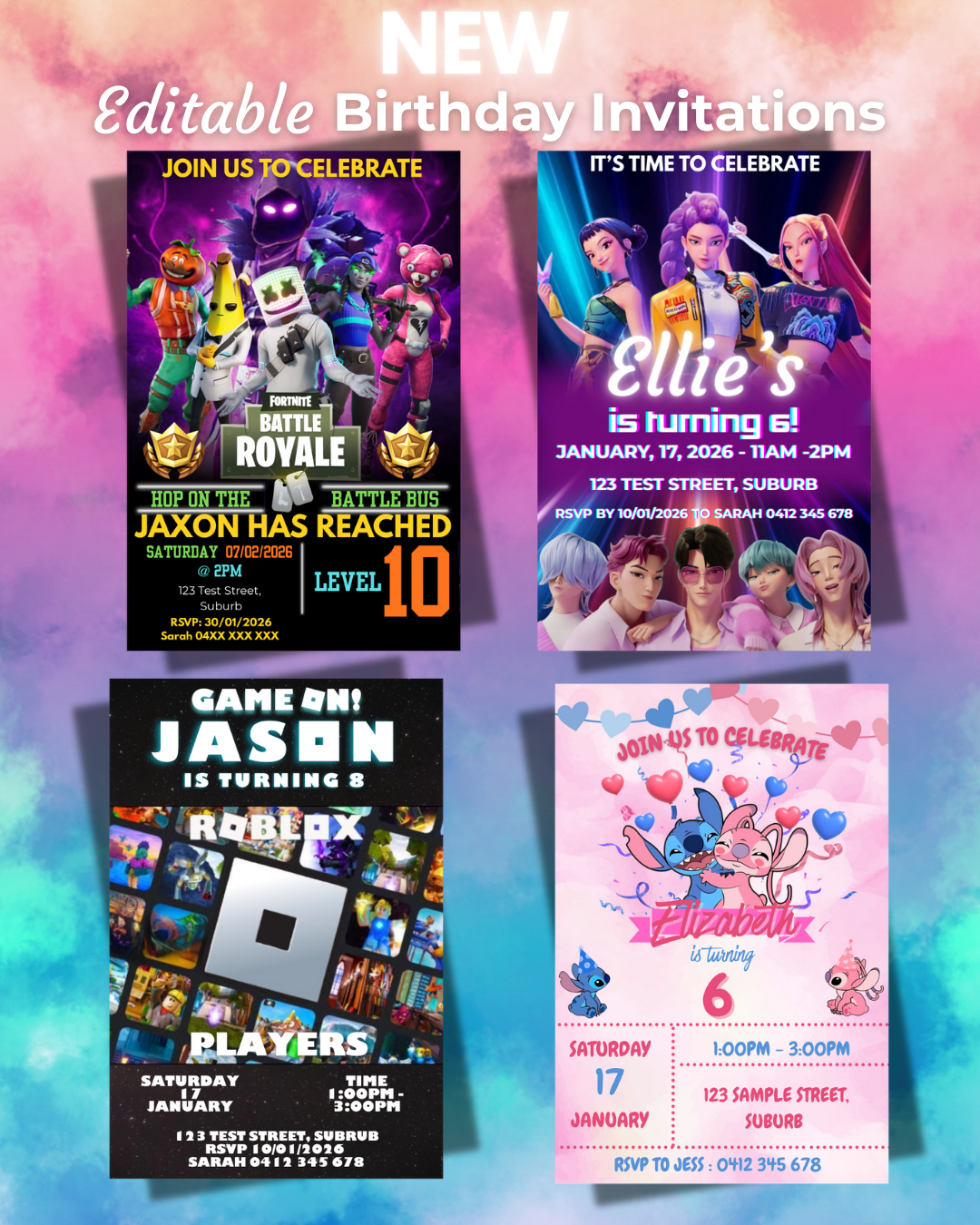 Personalise your invite in minutes using Canva, then download to share digitally or print at home.